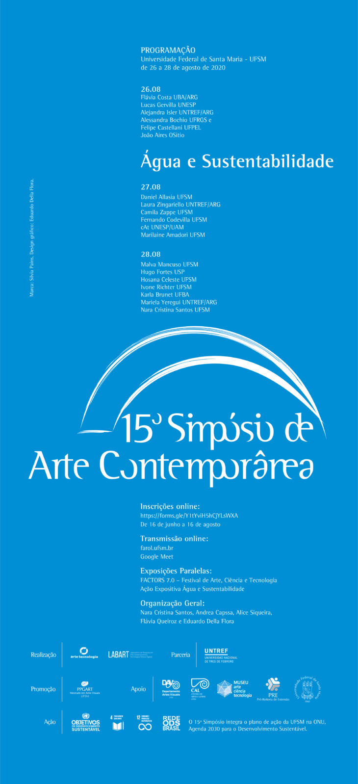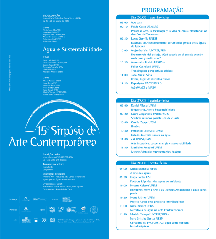 15º Simpósio de Arte Contemporânea, com o tema Água e Sustentabilidade, acontece de 26 a 28 de agosto de 2020, com transmissão online via Farol UFSM e Google Meet.