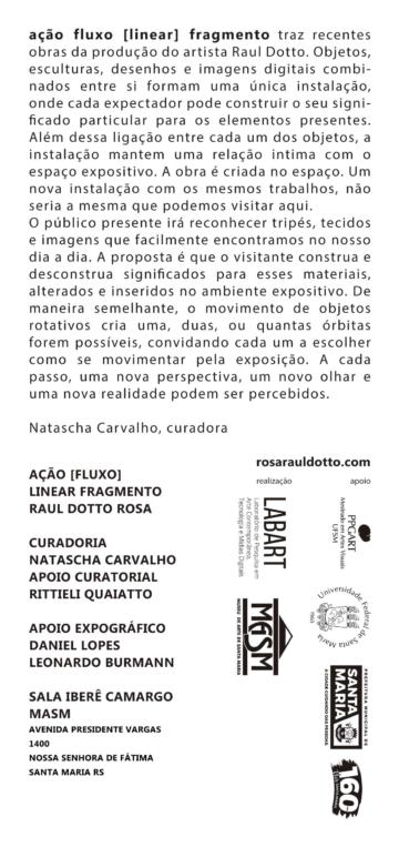 A exposição ação [fluxo] linear fragmento apresenta uma série de obras do artista Raul Dotto Rosa.