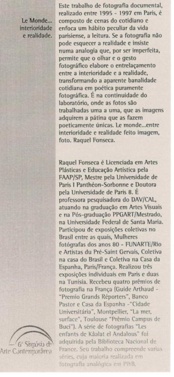 Le Monde… Interioridade e realidade apresenta a produção em fotografia da artista Raquel Fonseca.