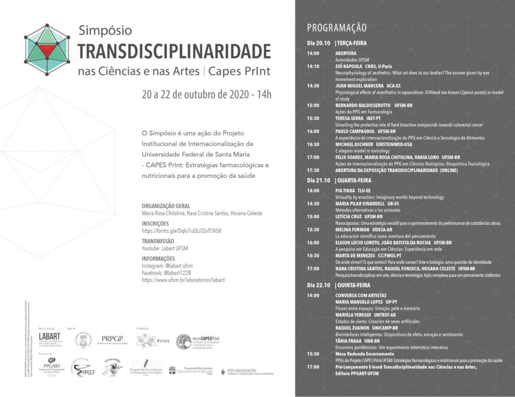 Simpósio Transdisciplinaridade nas Ciências e nas Artes | Capes PrInt - Dia 20.10 via Zoom com transmissão pelo YouTube