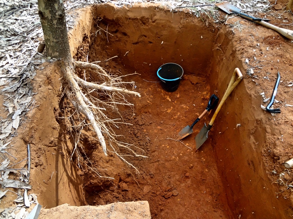 Foto: Trincheira com sistema radicular de Eucalyptus dunnii.