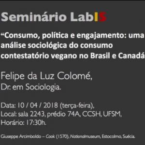 Seminário: "Consumo, política e engajamento: uma análise sociológica do consumo contestatório vegano no Brasil e Canadá" (2018)