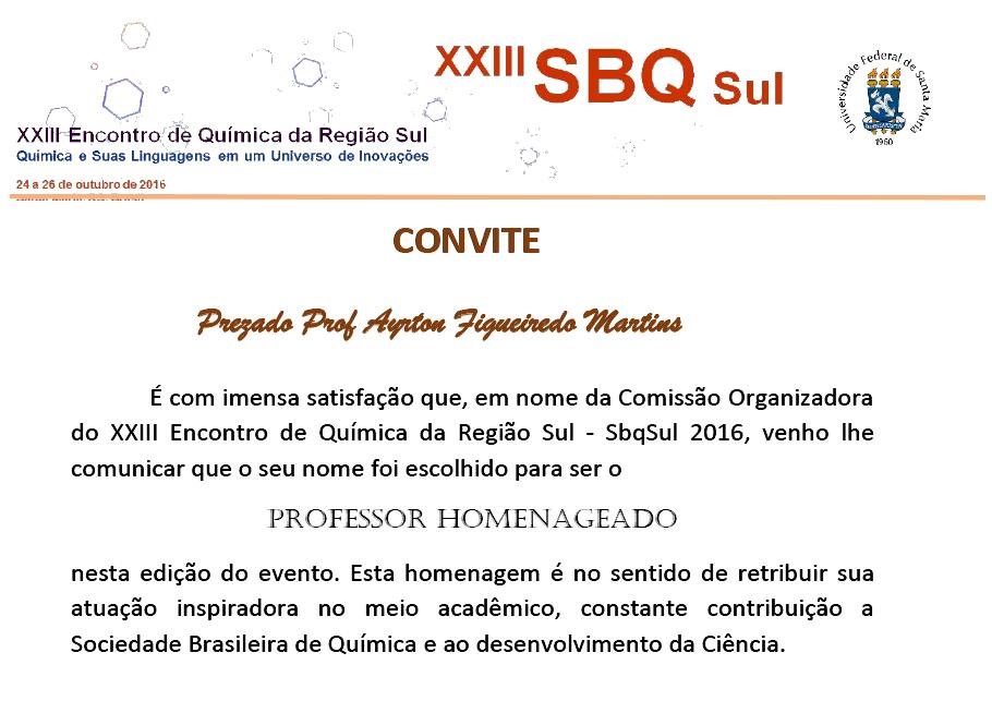 Entre os dias 24 e 26 de Outubro de 2016, ocorreu o XXIII Encontro de Química de Região sul na Universidade Federal de Santa Maria.