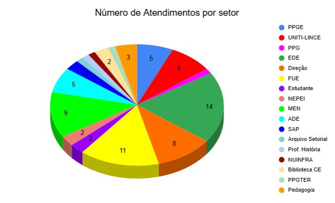Nesta página é possível visualizar o número de atendimentos realizados pela UNITI-LINCE ao longo do ano, bem como os setores mais atendidos pela unidade.