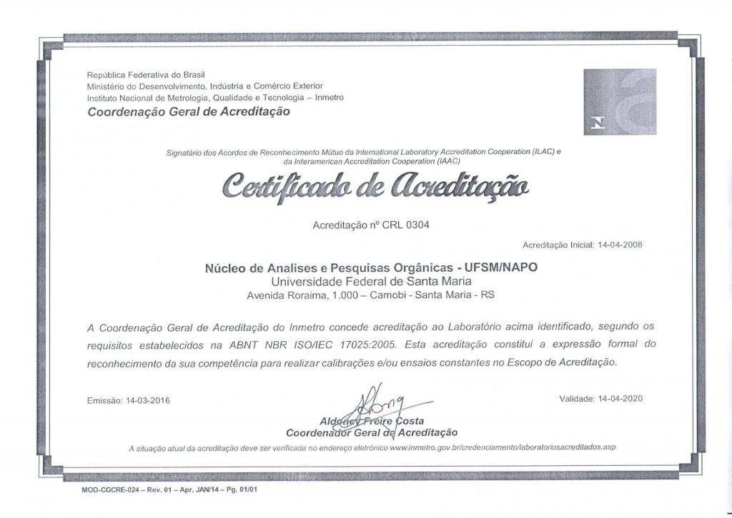 - Treinamento de Pessoal e Estagiários em ABNT NBR ISO/IEC 17025 nas instalações do NAPO;