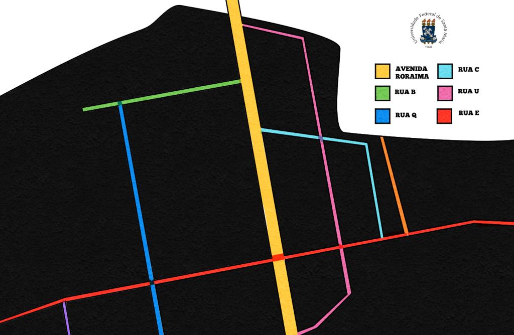 12. Além dos prédios, as ruas da Universidade também não foram muito planejadas. Atualmente a nomenclatura delas é feita por meio de letras. Outro projeto da Proinfra para 2020 é nomear e colocar placas para indicar as ruas do campus.