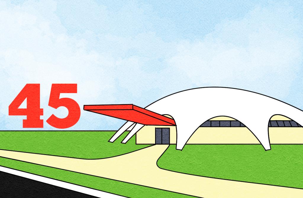5. O planetário, assim como os outros prédios, possui seu número, que é 45.