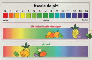 Ilustração com escala do pH mostra que informações compartilhadas em redes sociais não são factíveis, pois ignoram a real escala, que até 14