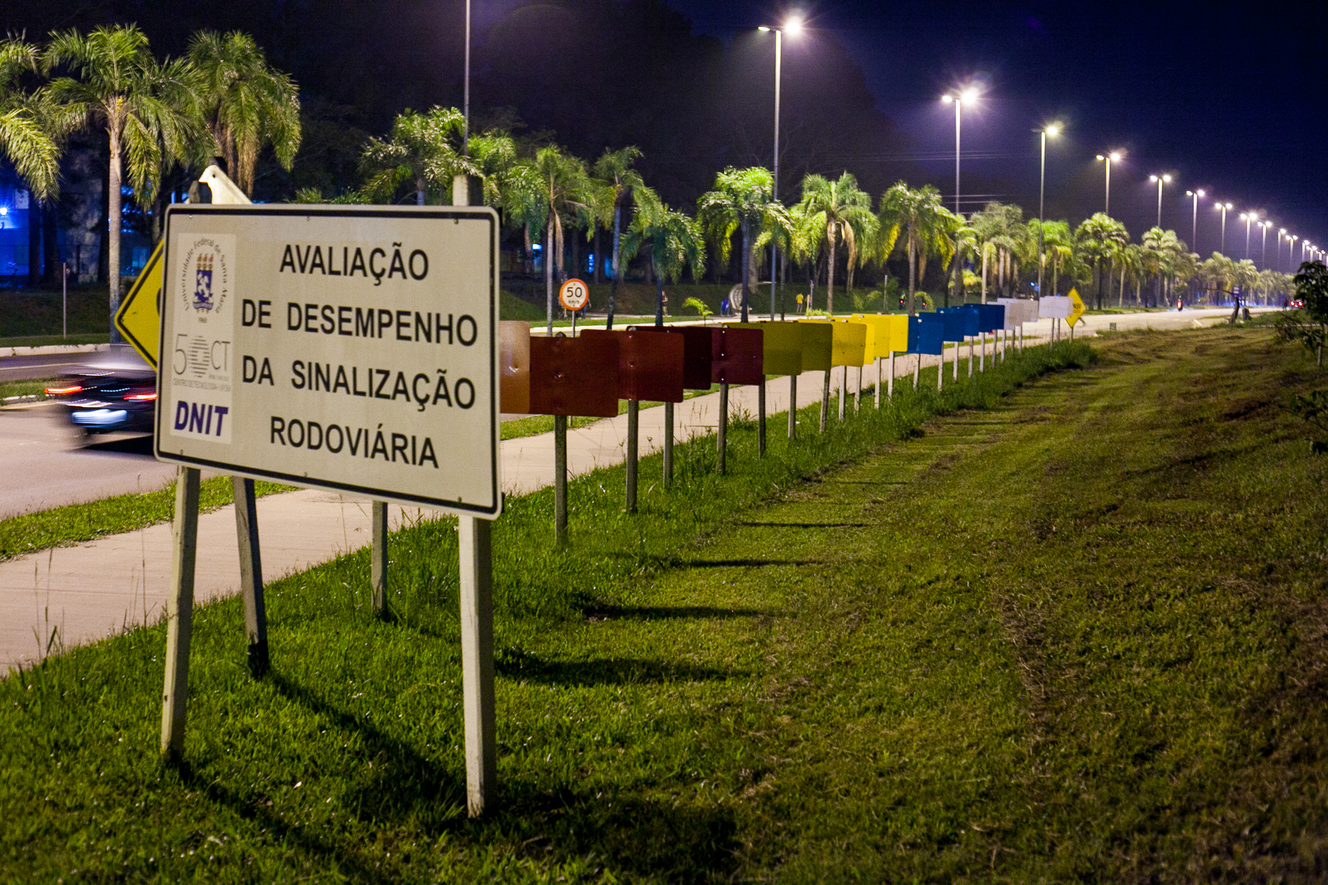 Se você frequenta a Universidade Federal de Santa Maria (UFSM), já deve ter reparado nas placas coloridas, uma ao lado da outra, que estão na Avenida Roraima, perto do arco de entrada. Instaladas em outubro de 2013, é provável que elas fiquem até 2023 naquele local, pois fazem parte de uma pesquisa a longo prazo do Grupo de Estudos e Pesquisa em Pavimentação e Segurança Viária (GEPPASV) da UFSM. O experimento serve para constatar o tempo que uma placa de sinalização de trânsito se mantém em boas condições na rodovia, mesmo depois de exposições ao sol, à chuva e a gases poluentes liberados pelos veículos.