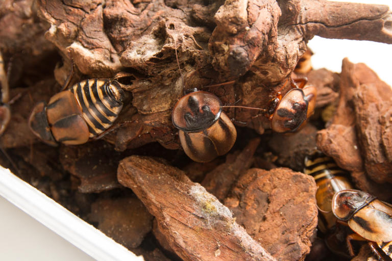 Os machos da espécie emitem sons que se assemelham ao do chocalho de uma cascavel. Denominadas cientificamente por Gromphadorhina portentosa, habitam o solo de florestas e se escondem entre troncos. Também conhecidas como “assobiadoras” devido ao ar advindo dos espiráculos, é considerada a maior espécie de baratas em tamanho do planeta, medindo entre 5 a 8 cm.