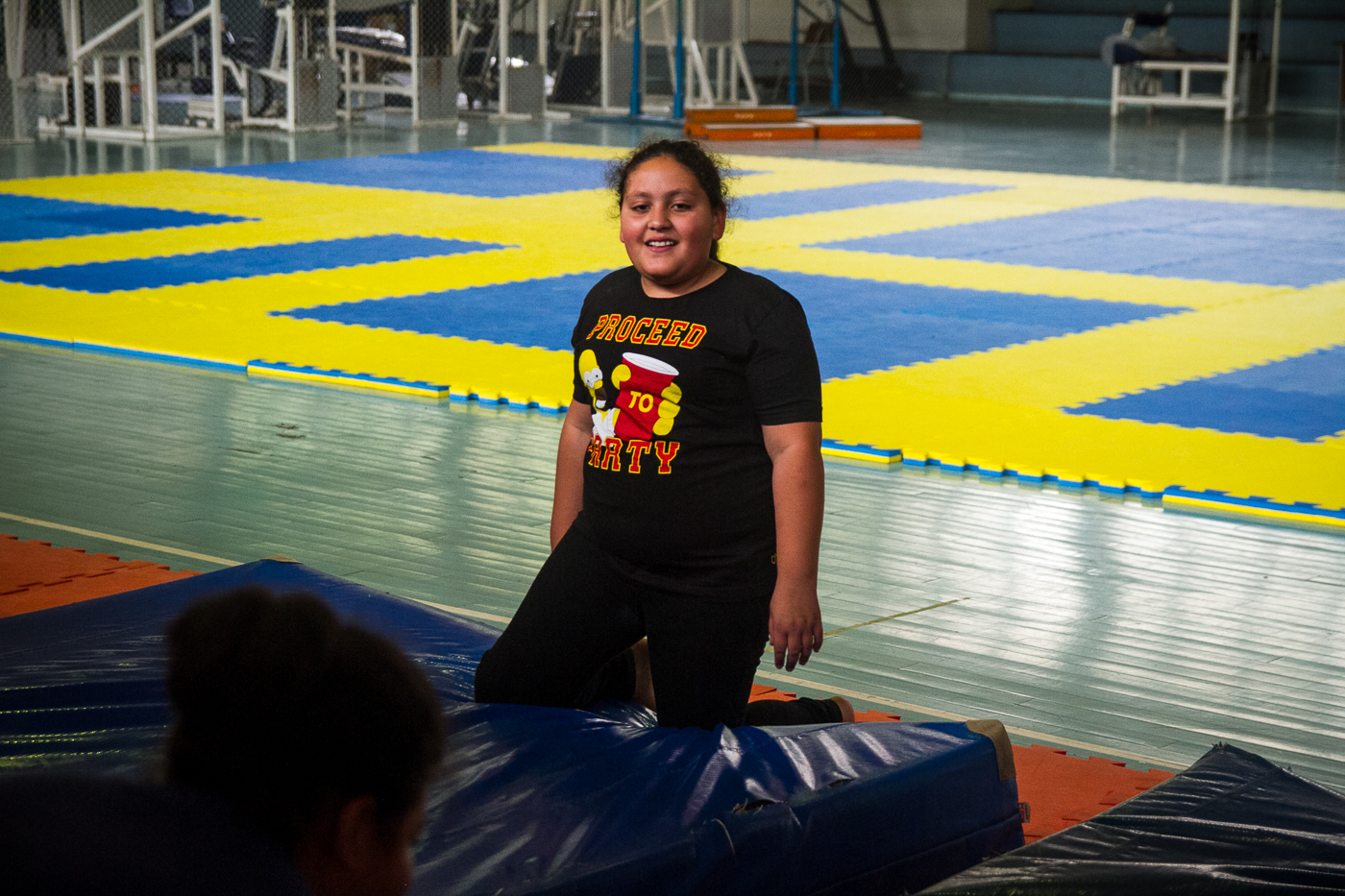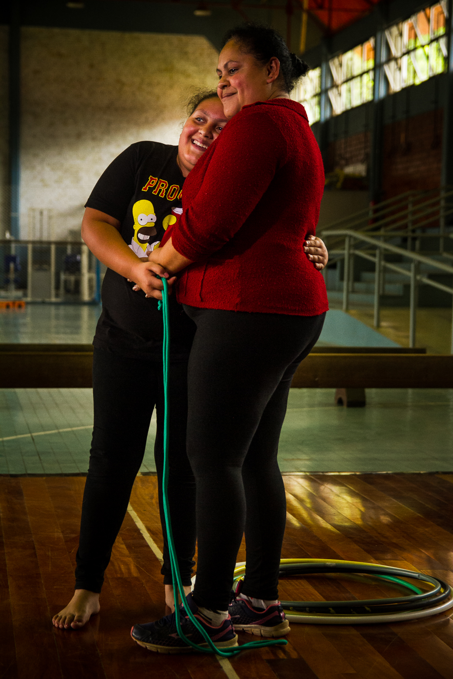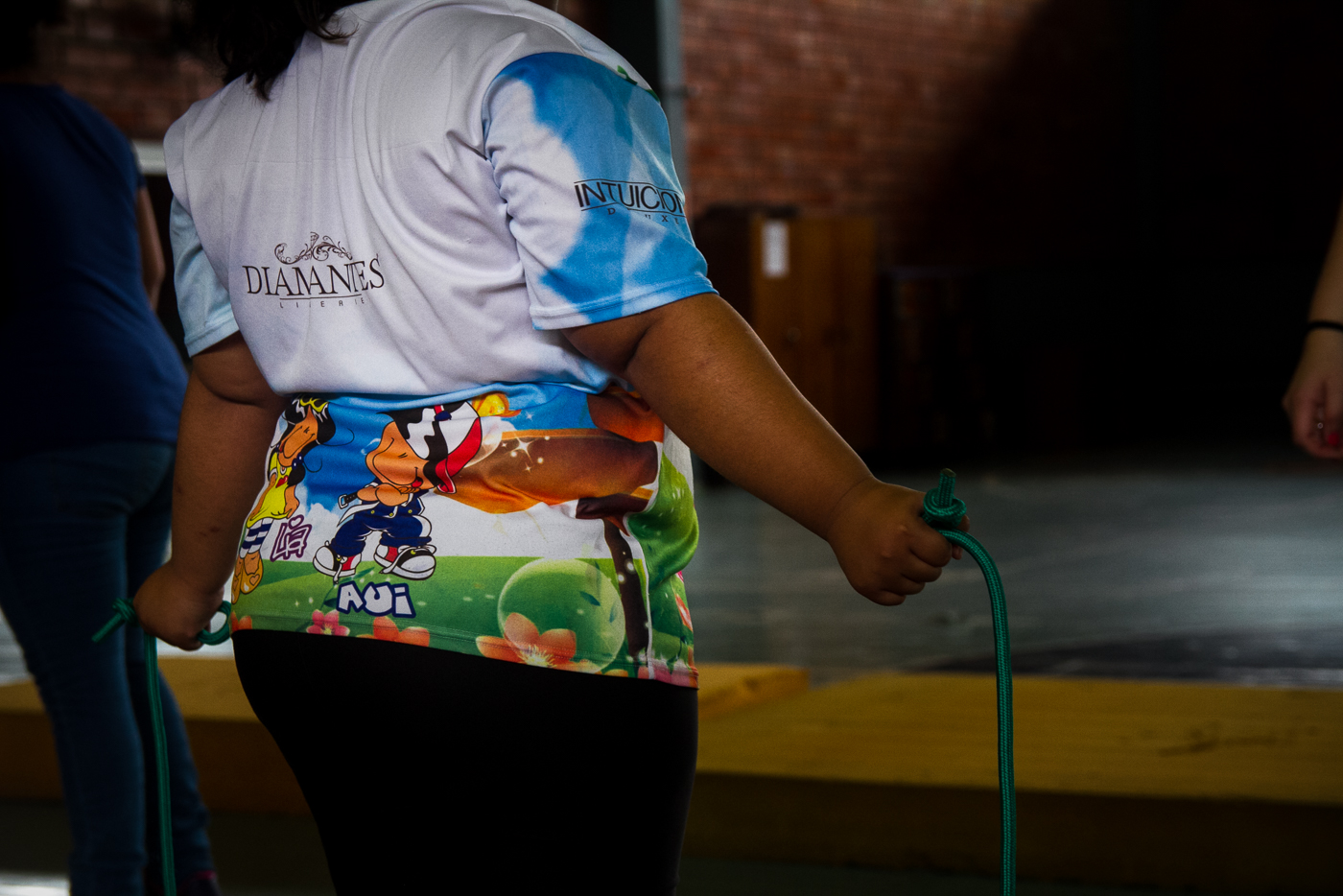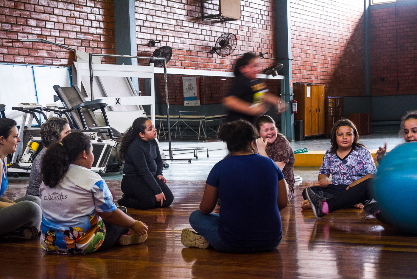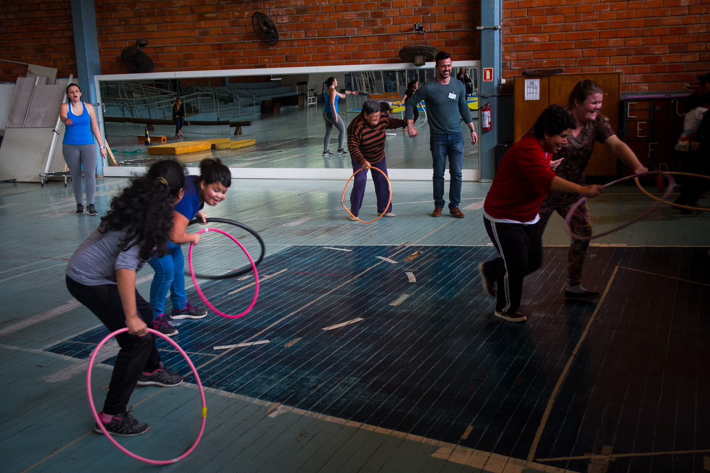 A estudante de Educação Física, Tailana Militz, está há dois meses desenvolvendo as atividades físicas com as três faixas etárias. Com as crianças e os adolescentes, ela busca oportunizar atividades dinâmicas, como circuitos funcionais, nas quais eles possam correr bastante e interagir com colegas e familiares. “O objetivo é que saiam do sedentarismo e que possam aprender exercícios para praticar também em casa, com pais, irmãos, primos”, explica Tailana.