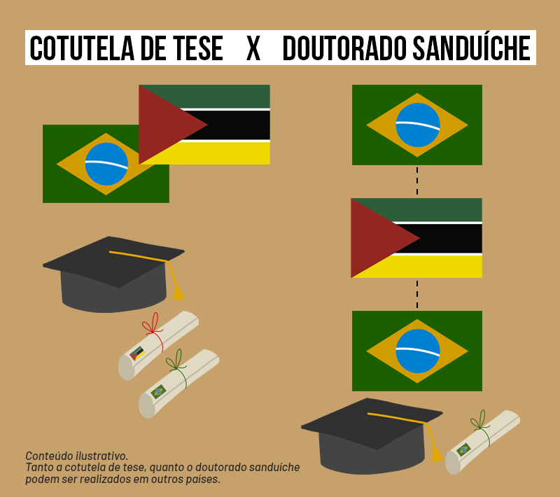 Embora as duas experiências sejam semelhantes – ambas permeiam a ideia de ampliação internacional da pesquisa para pós-graduandos – há regras específicas que diferem o doutorado sanduíche da cotutela de tese (ou doutoramento em regime de cotutela). O principal diferencial é que o processo de cotutela tem a inscrição plena do doutorando nas duas instituições de ensino – tanto na de origem, quanto na estrangeira -, com a necessidade de prestar um tempo mínimo de estudos na universidade do outro país, que segue as regras individuais de cada uma. Ou seja, enquanto no doutorado sanduíche o aluno viaja, volta e conquista o título na instituição de origem, no doutorado em regime de cotutela o acadêmico é diplomado pelas duas instituições.