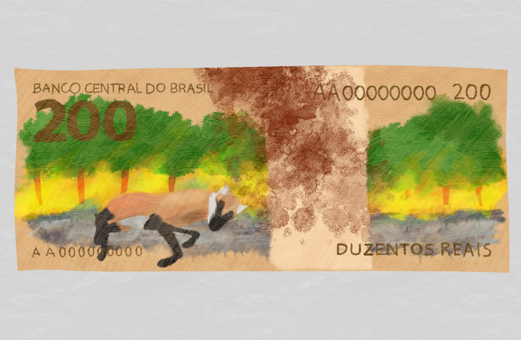 Para “movimentar a economia do país”, o Banco Central lançou em setembro a nova cédula de R$ 200,00. Na estampa, uma homenagem ao lobo-guará, animal ameaçado de extinção típico do cerrado, mas também encontrado no Pantanal, ambos locais atingidos por incêndios de grandes proporções em 2020.