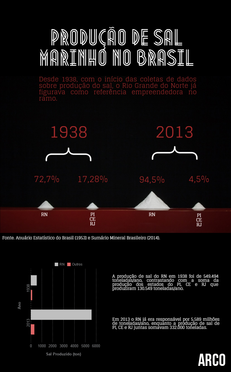 Desde 1938, quando o IBGE passou a coletar dados acerca da produção de sal no país, o Rio Grande do Norte figura como o maior produtor do insumo. Como a produção era artesanal, o volume não era suficiente para atender o mercado nacional , que precisava se complementado com importações. Com a criação do Instituto Nacional do Sal em 1940, a produção nacional passou a ser protegida, com cotas estabelecidas, sistemas de financiamento e a proibição de construção e ampliação de salinas. A Comissão Executiva do Sal, que assumiu a regulamentação do setor em 1967, acabou com as cotas e permitiu a ampliação e venda das salinas para empresas estrangeiras.