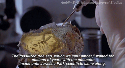 6) Recriar dinossauros a partir do DNA recuperado de mosquitos preservados em âmbar, como mostrado em Jurassic Park, não é possivel. Apesar de o âmbar (que é a resina vegetal fossilizada) preservar fósseis de maneira excepcional – há registros de insetos, penas, folhas, e até lagartixas inteiras em âmbar, a estrutura química do DNA não resiste tanto à passagem do tempo. O DNA acaba se degradando completamente em algumas centenas de milhares de anos. Os fósseis dos quais os cientistas extraem o DNA de dinossauros no filme têm 70 milhões de anos, ou até mais (nenhum registro de DNA resistiria tanto tempo).