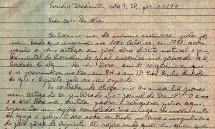 As cartas que Lima trocou com Frei Betto e Leonardo Boff foram encontradas pelos pesquisadores em excelente estado de conservações e expressam a dimensão sentimental desses personagens, que viveram um dos mais conturbados períodos políticos do Brasil. Em uma das cartas, escrita por Frei Betto a Alceu Lima, o frade fala sobre o papel da Igreja no regime militar: “Parece que deixamos de viver na Igreja do silêncio. Esta Igreja, cheia de ‘prudência’, não foi capaz de uma atitude enérgica por ocasião de nossa prisão. […] Creio que a década de 70 será decisiva para a Igreja no Brasil. A impressão que tenho é que, só agora, começamos a colher os frutos das sementes lançadas pela Ação Católica, na década de 60”.