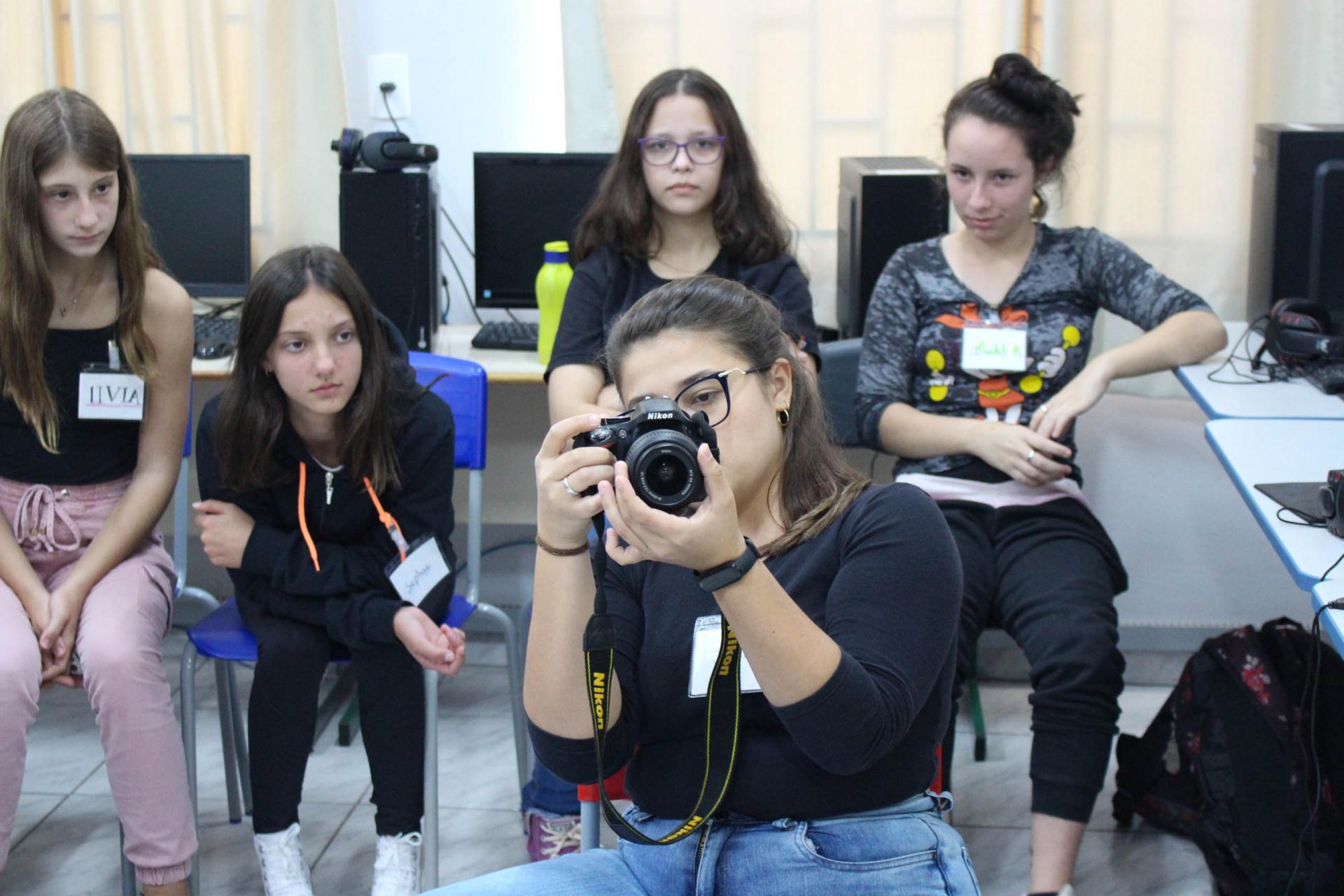 Ao primeiro clique e o pontinho vermelho de “Gravando”, as crianças dos Núcleos Municipais Arco Íris e da Sede e Extensão Pessegueiro têm sua primeira experiência com o cinema; a euforia ao pegar a câmera e gravar momentos rotineiros aos pequenos, totalizando 30 estudantes, é inovador a todos, dos discentes aos estudantes.