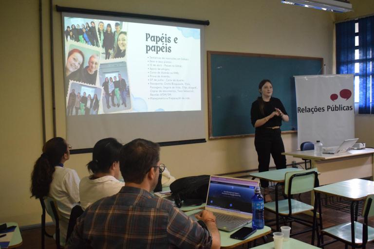 De início, foi explicado sobre a jornada acadêmica no curso de Relações Públicas. Depois, as estudantes Júlia Gonzalo e Júlia Weber compartilharam suas histórias na Colômbia e a graduanda Luciana Braatz contou sobre seu intercâmbio na Alemanha. Alunos de outros cursos também compareceram. O estudante de Jornalismo no primeiro semestre, Mateus Marchioro afirma que, em eventos como esse, “é possível se conectar com as possibilidades reais que as áreas de trabalho oferecem”.