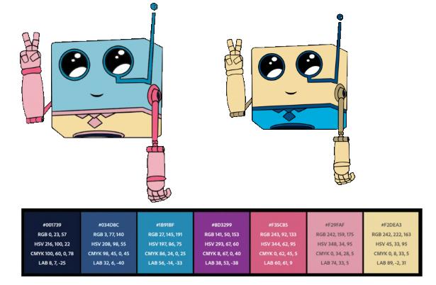 “Queríamos manter a originalidade do primeiro Mr. O QI mas que fosse mais moderno e condizente com a temática espacial, por isso optamos por um robozinho. O que torna ele camaleônico e adaptável em diversas ocasiões, até mesmo nas futuras revistas.”  (Beatriz, líder da Equipe Gráfica)