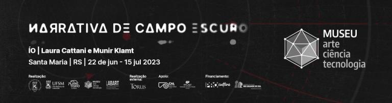 “Narrativa de Campo Escuro” é a exposição do duo ÍO. A mostra recebe a curadoria de Nara Cristina Santos e Juliana Vizzotto. Nesta exposição, os artistas Laura Cattani e Munir Klamt compartilham obras relacionadas ao conceito de magnetoPercepção para instigar um outro sentido perceptivo diante de “obscuros recursos sensoriais” e para explorar campos desconhecidos, negligenciados ou esquecidos pela percepção humana, partindo de estudos sobre a magnetoRecepção para defender uma sensibilidade magnetoperceptiva.