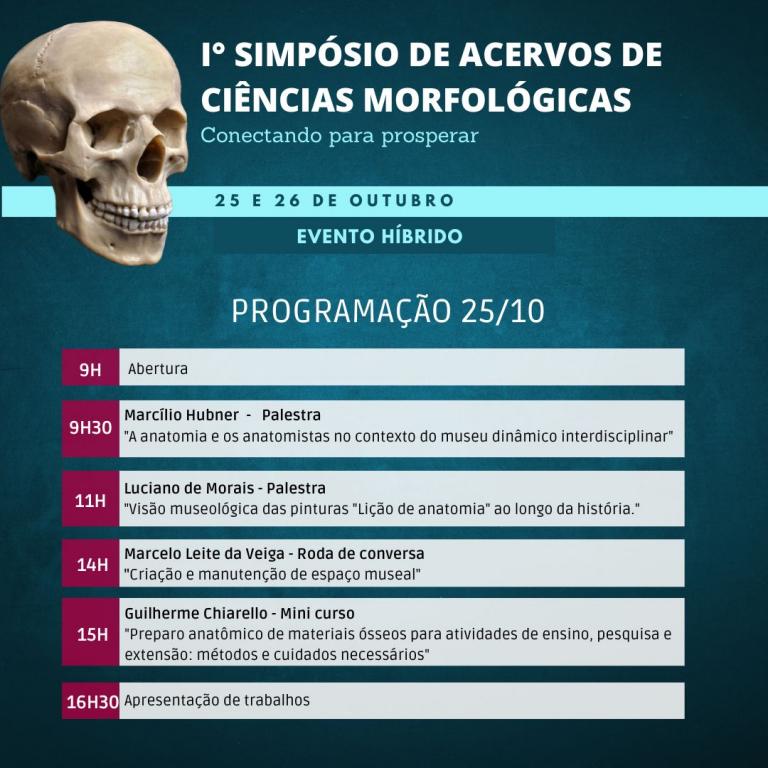 O simpósio é um evento técnico–científico aberto híbrido, presencial e online, onde encarregados e interessados por acervos, coleções de museus morfológicos e similares possam compartilhar saberes, interagir e discutir sobre as fortalezas, fraquezas, oportunidades e ameaças, para ao final buscar a integração, o fortalecimento e o estabelecimento de parcerias.