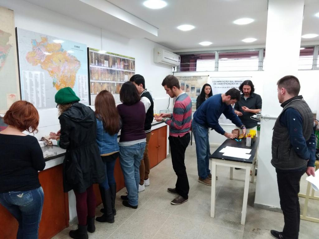 O museu de solos do RS participou do evento Design+ 2017, promovido pelo Curso de Desenho Industrial da UFSM nos dias 06, 07 e 08 de junho. O professor Ricardo Schenato participou de uma mesa redonda sobre Natureza, cidades, conexões e ações, enquanto o professor Fabrício Pedron ministrou um minicurso de tintas a base de solos. Abaixo segue o registro fotográfico do minicurso, desenvolvido nas dependências do museu de solos.