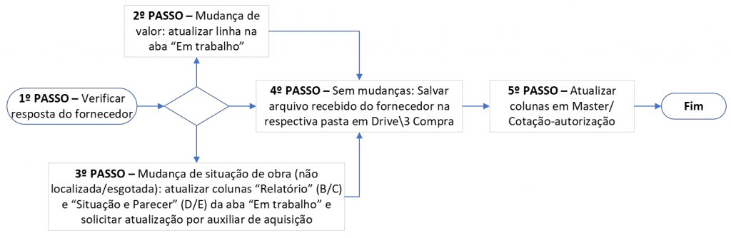 4º PASSO – Salvar arquivo de resposta enviado por e-mail do fornecedor na respectiva pasta em Drive\3 Compra e acrescentar ao seu nome “- cotação respondida”;