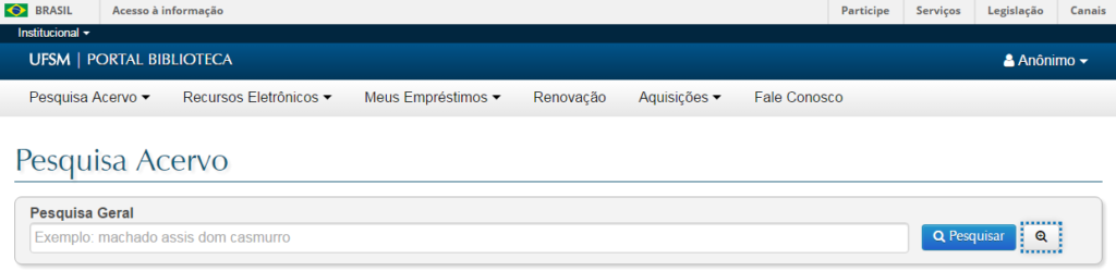 Para acessar mosso catálogo você pode pesquisar aqui, ou também pode usar o Serviço de Descoberta, uma caixa de busca unificada que pesquisa em todos os catálogos das bibliotecas da UFSM.