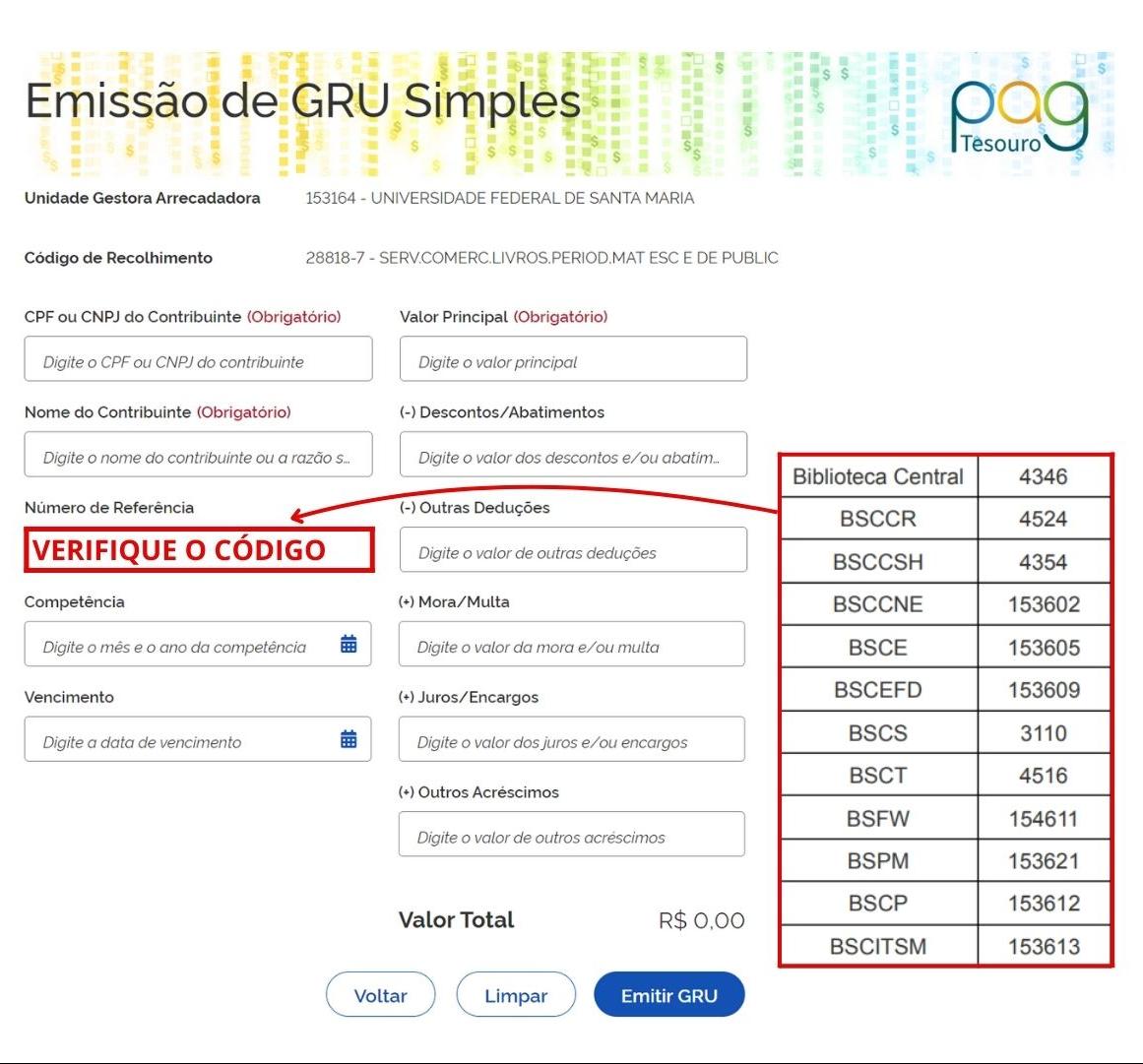 Antes de preencher o campo “Número de Referência”, consulte a tabela abaixo:
