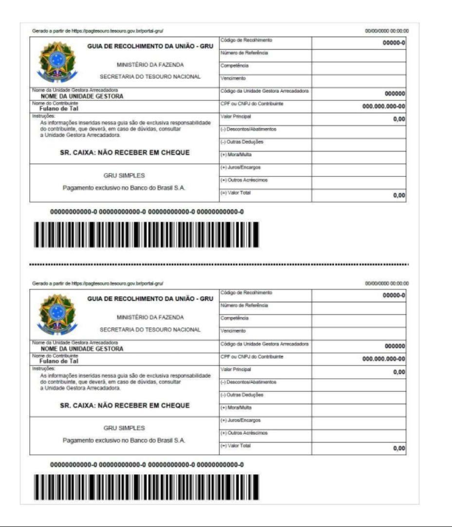 - Após preencher todos os campos, clique em “Emitir GRU”.