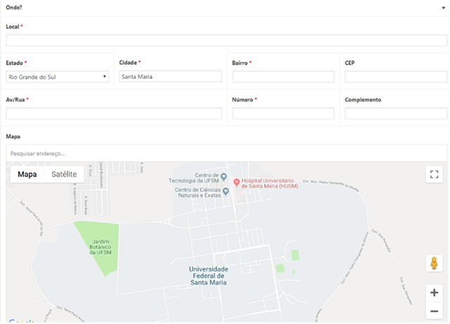 A próxima informação a ser preenchida é “quando”. Ali você deve informar quando começa e quando termina o evento. Logo depois vem a aba “onde”, aqui você dará todas as informações sobre o endereço onde ocorrerá o evento.