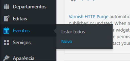 Outro recurso disponível é o de adicionar notícias relacionadas ao evento. Para isso, na própria página do evento, você irá clicar no botão para criar uma notícia. Agora, no painel do WORDPRESS, adicione um título e escreva a notícia que quer vincular. Você também pode inserir imagens e documentos, normalmente. Depois disso, é só publicar.