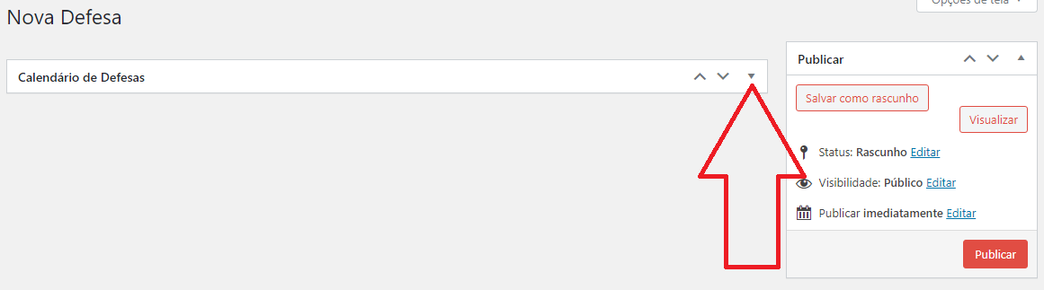 3. Caso o formulário não seja exibido ao ir em nova defesa, basta ir na seta demostrada pela imagem e o formulário será exibido automaticamente.