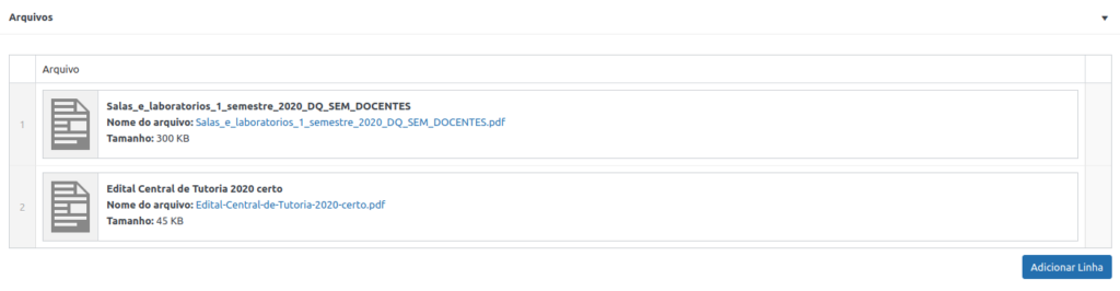 As imagens a seguir apresentam, respectivamente, a nova linha mencionada acima e uma seção de arquivos já preenchida.
