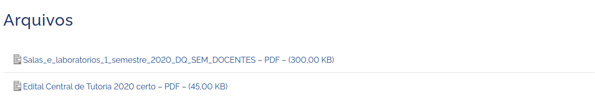 Como mencionado no início desta seção, os arquivos serão exibidos ao público em uma página específica em formato de lista contendo o nome do arquivo, seu formato (extensão) e o tamanho, conforme pode ser observado na imagem abaixo.
