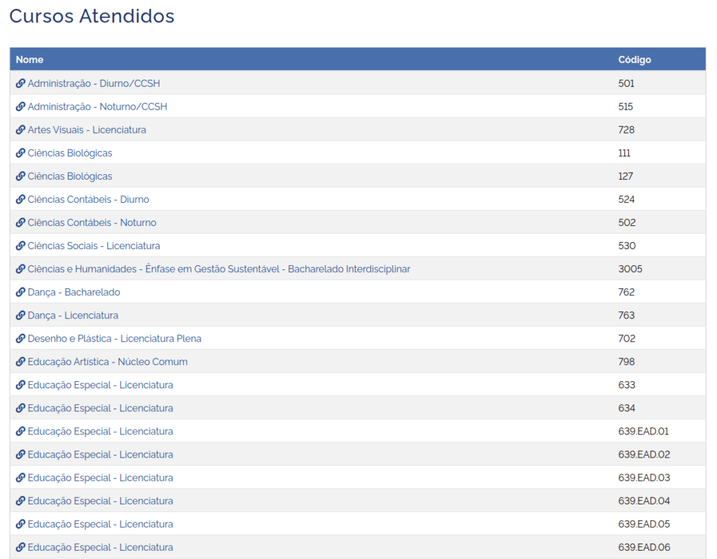 Esta última página da lista traz todos os cursos atendidos pelo Departamento com base nos seguintes critérios: