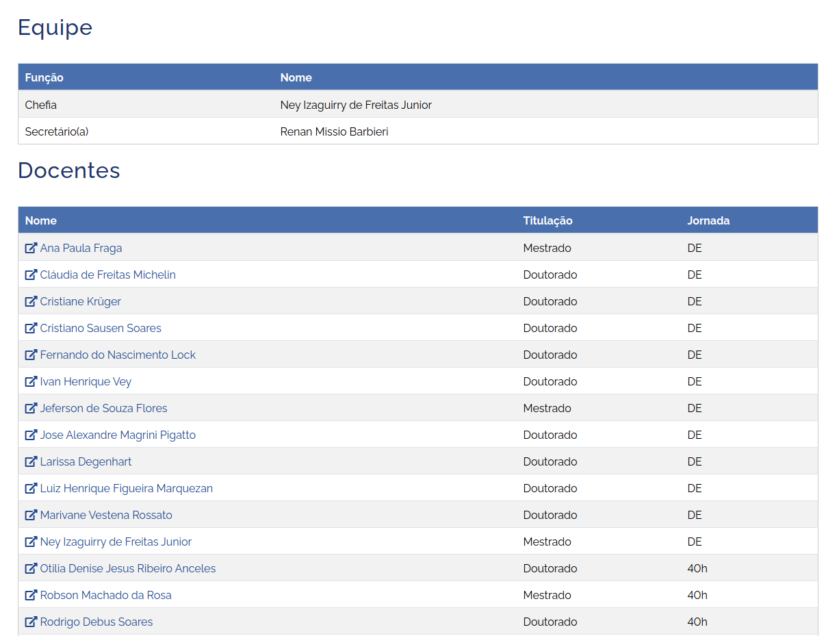 Como forma de destacar vínculos do Departamento com projetos, unidades externas ou mesmo da própria UFSM, é possível cadastrar entidades vinculadas. Orientações estão disponíveis na documentação sobre Entidades Vinculadas.