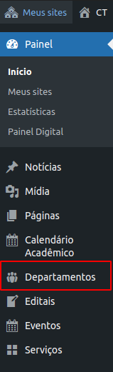 Pronto, o usuário cadastrado terá acesso ao painel administrativo para continuar a editar a página do Departamento.