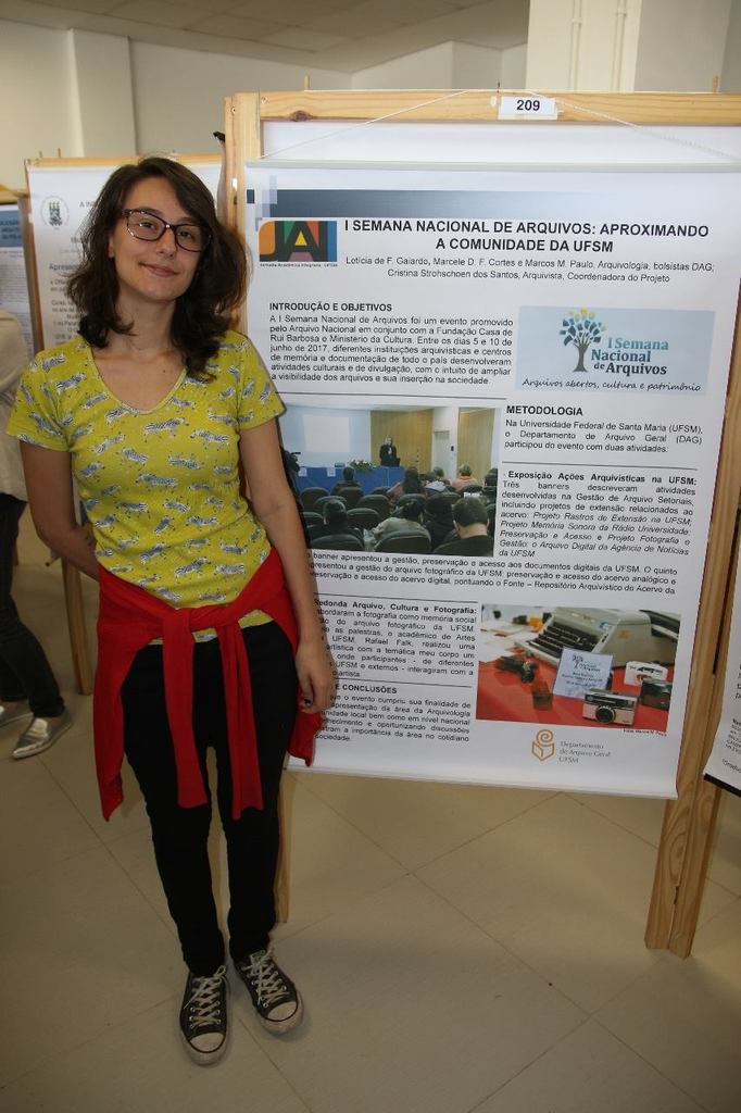 I Semana Nacional de Arquivos: Aproximando a Comunidade da UFSM apresentado por Letícia de Freitas Gaiardo (acadêmica Arquivologia), em co-autoria com Marcele Della Flora Cortes (acadêmica Arquivologia), Marcos Machado Paulo (acadêmico Arquivologia) e Cristina Strohschoen dos Santos (arquivista DAG)
