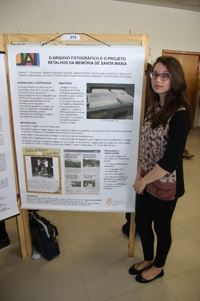 apresentado por Lidiane Castagna Gonçalves (acadêmica Desenho Industrial), em co-autoria com Letícia de Freitas Gaiardo (acadêmica Arquivologia), Jaqueline Both (acadêmica Arquivologia) e Cristina Strohschoen dos Santos (arquivista DAG).