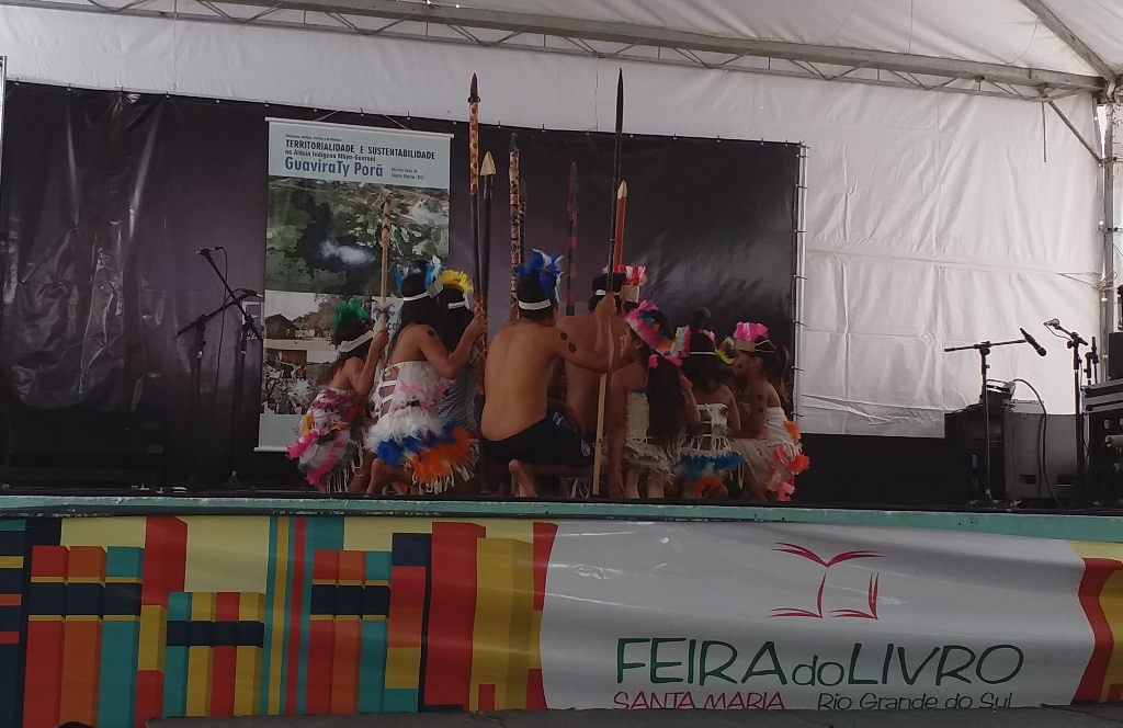 Na tarde de 30 de abril, no palco principal da Praça Saldanha Marinho, foi realizada a ação Leitura Inclusiva: Cultura Indígena. Foram promotores da ação a Aldeia Indígena Guarani Mbyá -Tekoá Guaviraty Porá, a Escola Indígena YVYRA IJA TENONDE VERA MIRI, a Aldeia Indígena Kaingang Três Soitas, a Escola Indígena AUGUSTO OPE DA SILVA, o Núcleo de Acessibilidade da Coordenadoria de Ações Educacionais da Universidade Federal de Santa Maria. Confira notícia Todo Dia é dia de Índio no site da Feira do Livro: http://feiradolivrosm.com.br/?p=3263.
