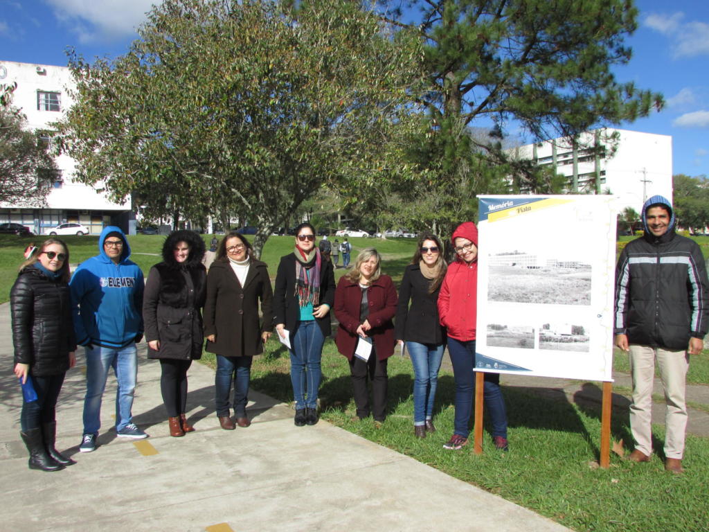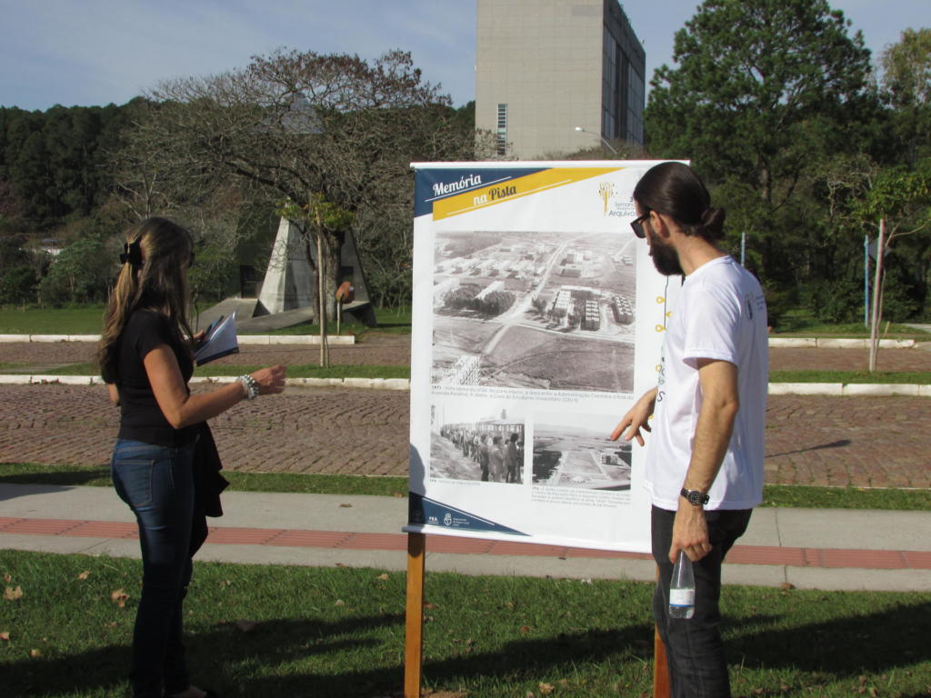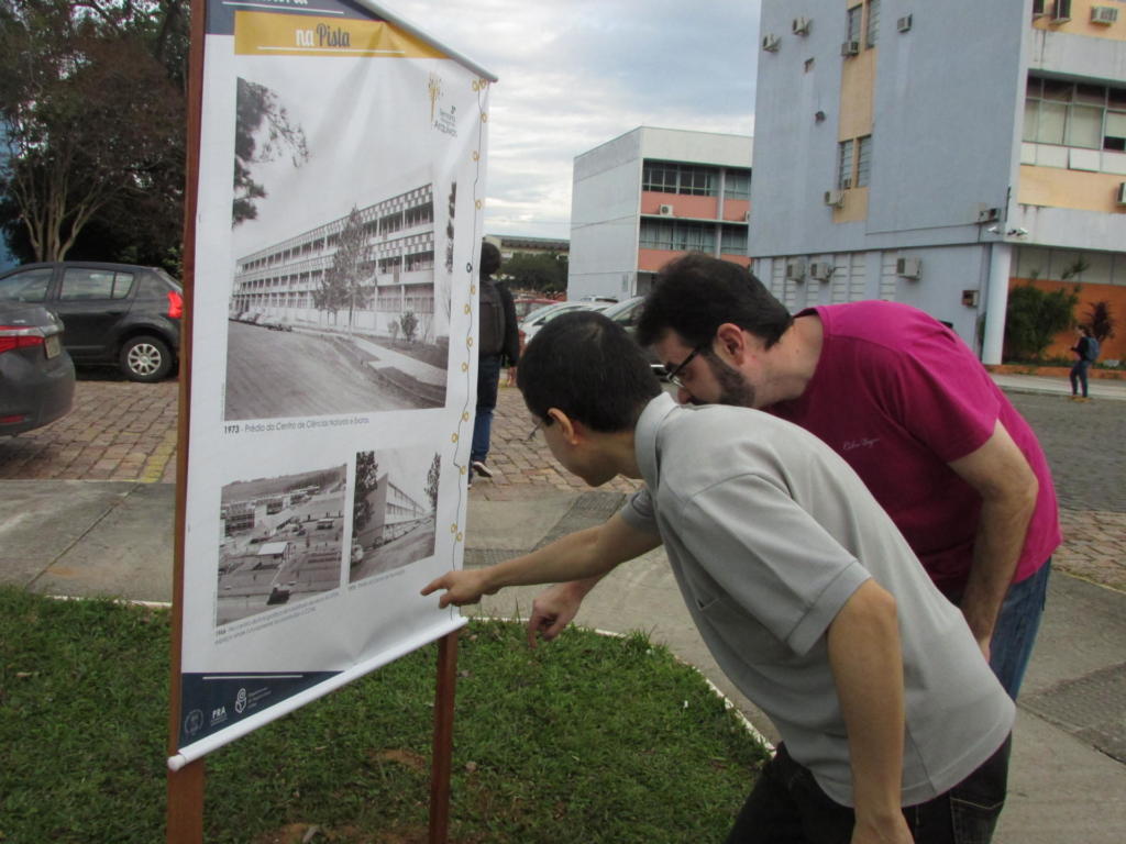 Cada painel contou com uma fotografia em tamanho grande e duas menores, contextualizando o histórico do ponto onde se encontrava. As fotografias foram escolhidas no Arquivo Fotográfico da UFSM, custodiado pelo DAG. Abaixo de cada imagem o ano de referência e a legenda correspondente. A exposição atingiu o público de duas principais formas: pedestres que fazem uso da Pista Multiuso no cotidiano e grupos com acompanhamento de monitores da exposição.