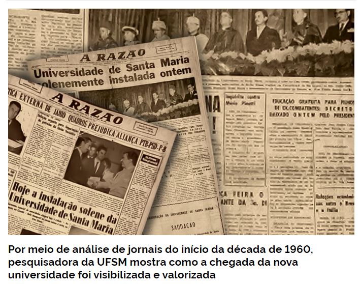 Na UFSM, Daiane Spiazzi, doutoranda do Programa de Pós-Graduação em Comunicação da UFSM, historiadora e jornalista, mostra em sua tese, por meio de análise de jornais do início da década de 1960, como a chegada da nova universidade foi visibilizada e valorizada.