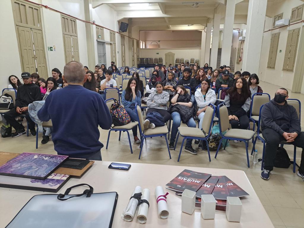Na manhã de 21 de outubro foi realizada, no auditório da Escola Estadual Manoel Ribas, uma palestra sobre muralismo. Juan Amoretti, artista e ex-professor da Universidade Federal de Santa Maria falou sobre os processos de pintura de murais da universidade, abordando também suas experiências com escultura na cidade universitária e em Santa Maria. Ao final da fala, alguns alunos individualmente mostraram seus desenhos a Amoretti o qual teceu comentários. Estiveram presentes mais de 50 alunos da escola e professores de artes.