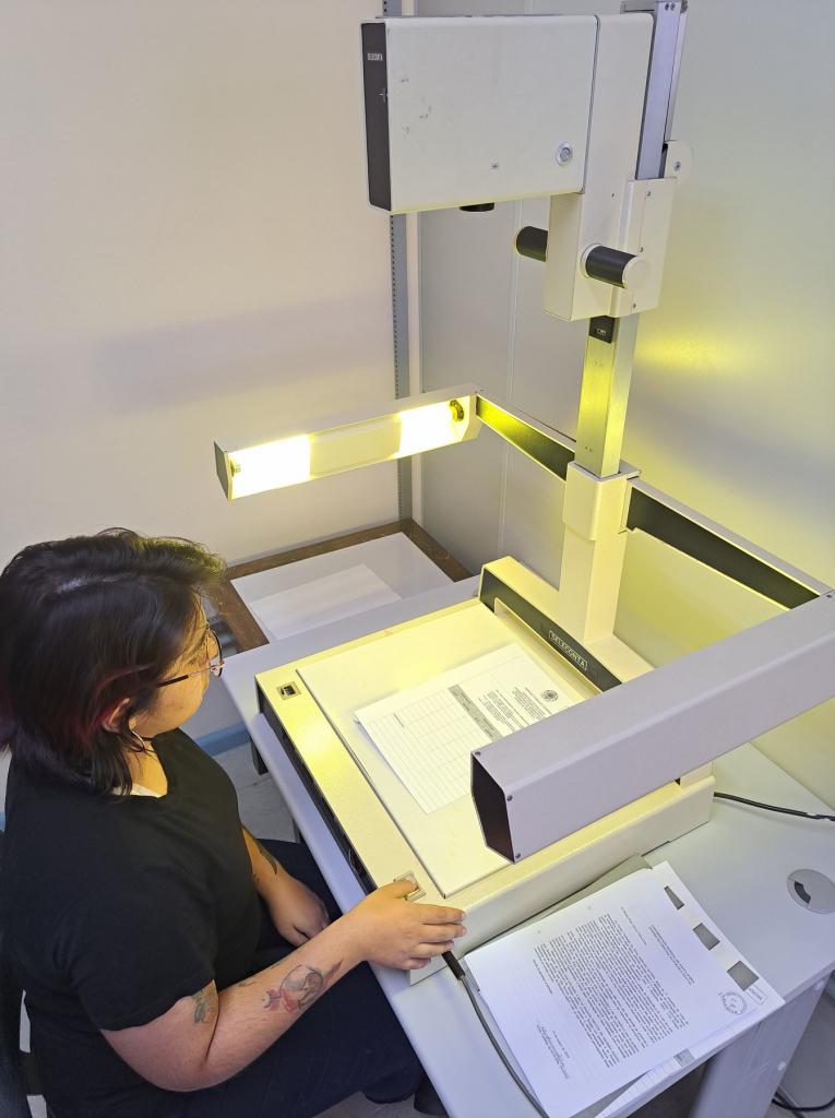 Nas tardes de 13 e 14 de dezembro, alunos do Curso de Arquivologia da UFSM participaram de aula prática de microfilmagem, conteúdo da Disciplina Reprodução de documentos – ARQV0022, vinculada ao 4º semestre do currículo e ministrada pelo professor Sérgio Lampert. A aula foi ministrada no espaço do Laboratório de Reprografia do Departamento de Arquivo Geral, na sala 2235 do prédio 74A.