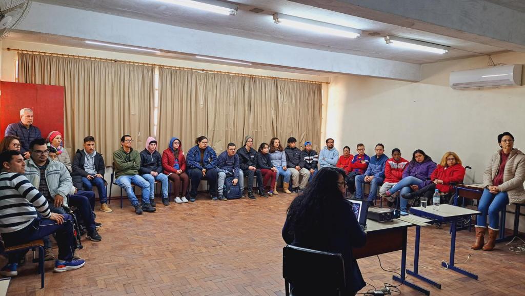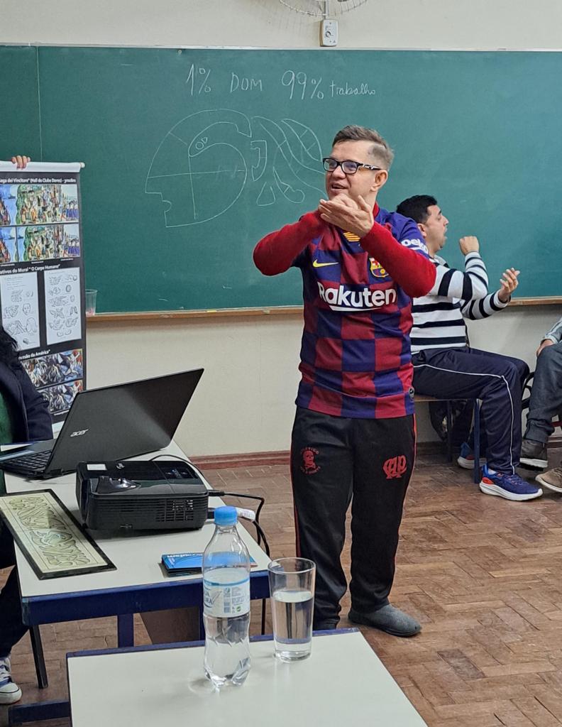 Na manhã de 29 de agosto iniciou a oficina de muralismo na Escola Estadual de Educação Especial Dr. Reinaldo Fernando Coser. Durante o mês de setembro 20 alunos, sob a coordenação da artista visual Cica Ereno e com acompanhamento dos professores de Artes da escola, produzirão um mural de arte surda. Estiveram presentes os professores da escola, a coordenadora pedagógica Luciane Parreira e o diretor Jeferson de Oliveira Miranda.