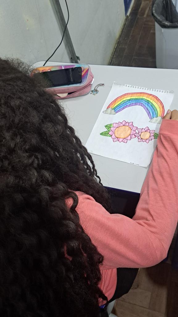 Nos próximos encontros semanais, sob a coordenação da artista visual Cica Ereno, com acompanhamento de Jaqueline Both, professora de Arte da escola; e Alessandra Brixius, acadêmica de Artes Visuais; iniciou-se o planejamento do mural a ser pintado pelos alunos. O tema escolhido foi alegria e cada aluno produziu seu desenho, para juntos, constituírem o mural que ficará na entrada da escola.