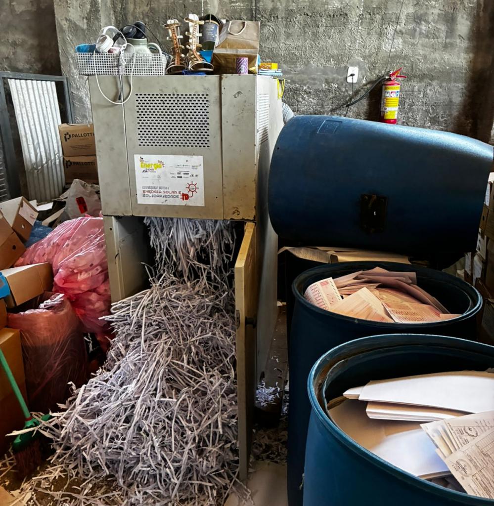 Todo o material eliminado passou por fragmentação mecânica nas instalações da ASMAR, sob supervisão de profissionais responsáveis indicados pelo Departamento de Arquivo Geral (DAG), assegurando que as informações não possam ser recuperadas e promovendo a destinação segura e sustentável do papel, o que reforça o compromisso da UFSM com práticas sustentáveis e com a economia circular.