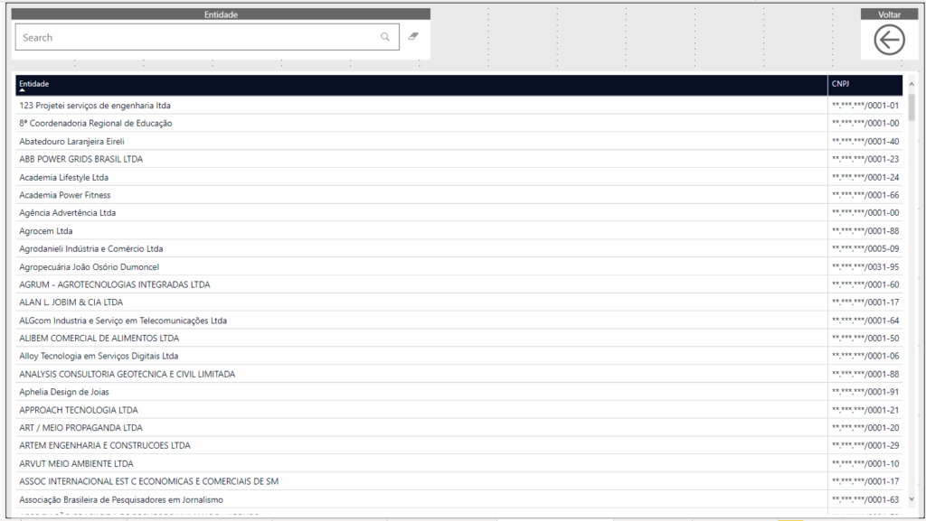 Consulta a Entidades Externas cadastradas