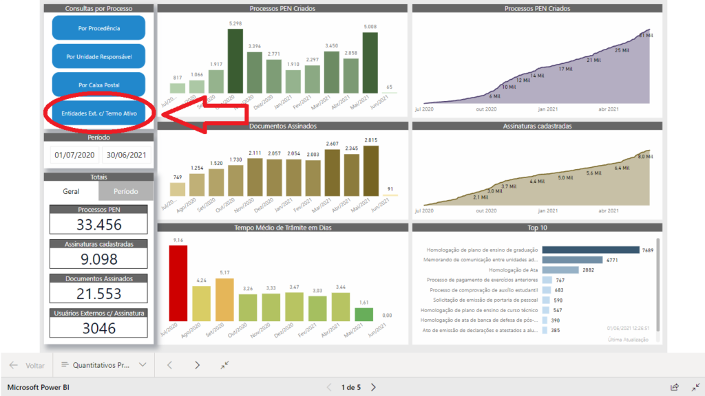 A consulta leva em conta as entidades externas que possuem alguma pessoa física como responsável legal, que esteja com termo de concordância da assinatura eletrônica ativo. Isso representa que a referida entidade (por meio do seu representante) está apta a receber e assinar documentos no PEN-SIE.